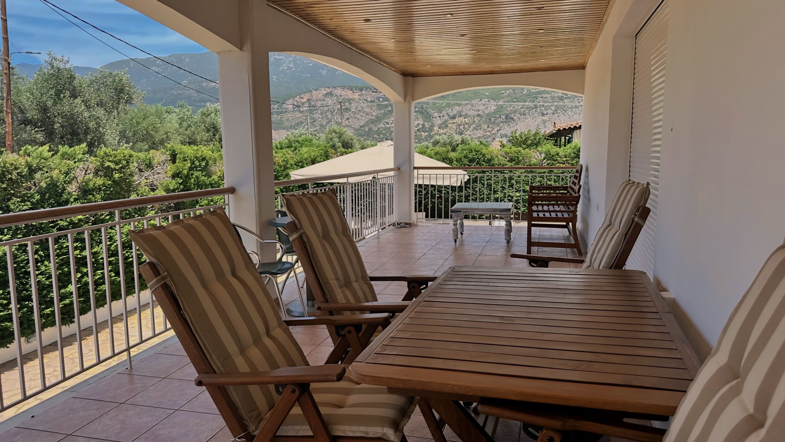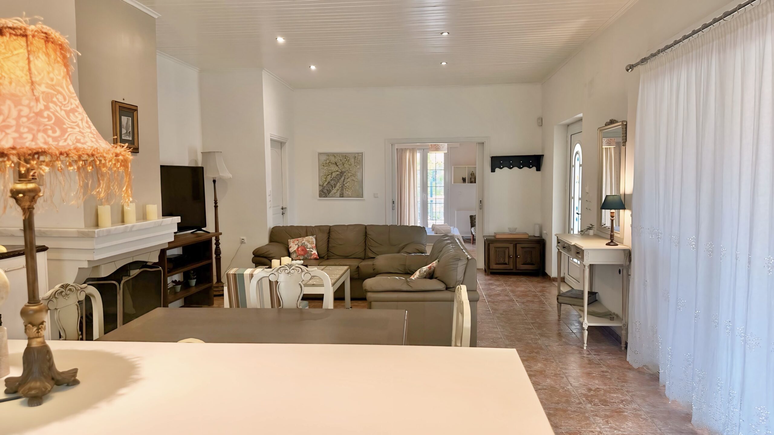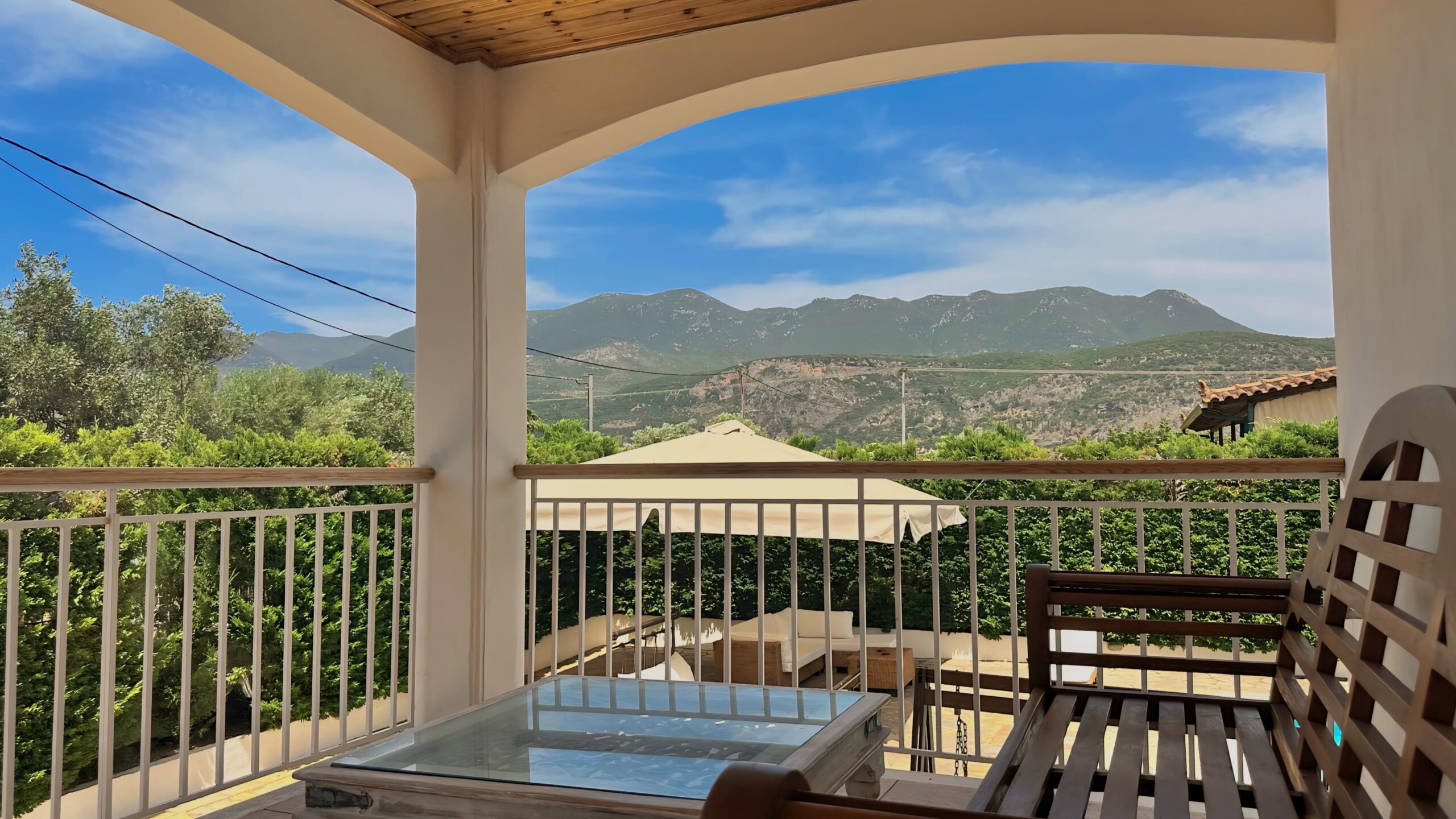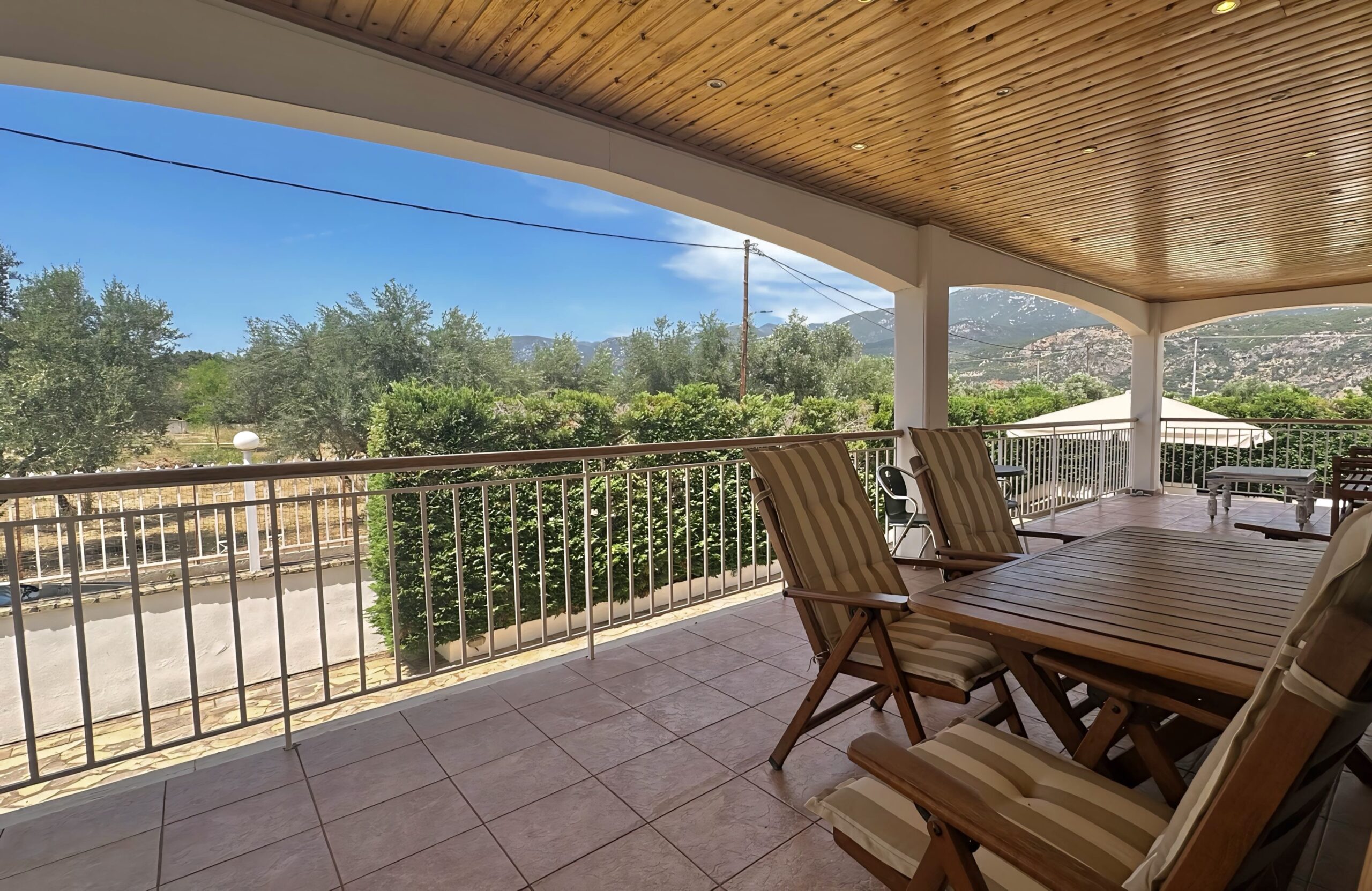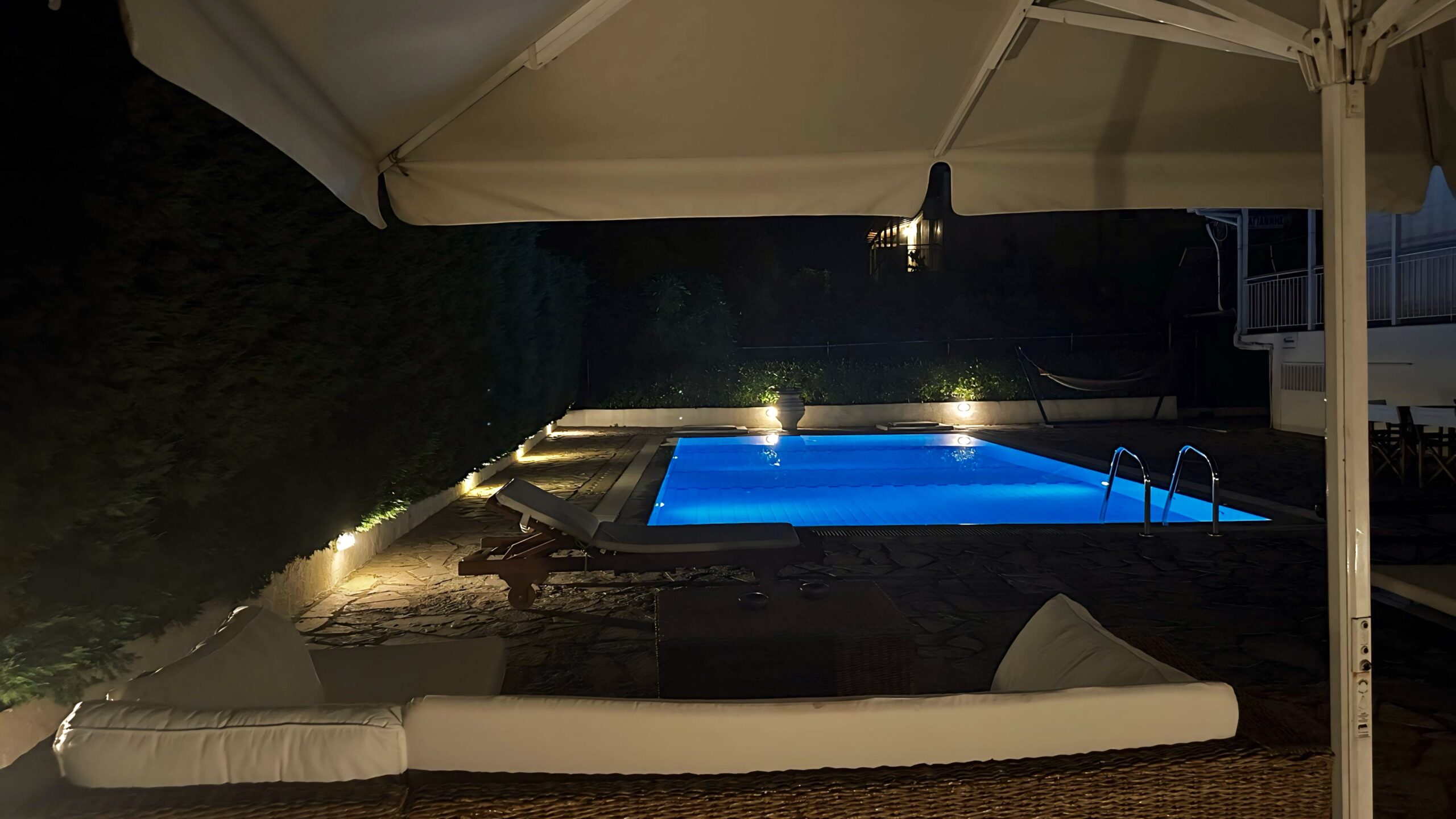 Η εξωτερική περιοχή της βίλας είναι εξίσου εντυπωσιακή, με μια μεγάλη πισίνα που σας προσκαλεί να απολαύσετε δροσερές βουτιές κάτω από τον καυτό ελληνικό ήλιο. Η βεράντα με θέα στη γύρω εξοχή είναι το ιδανικό μέρος για να χαλαρώσετε με ένα ποτό το βράδυ, απολαμβάνοντας την ηρεμία και τη φυσική ομορφιά της περιοχής.
